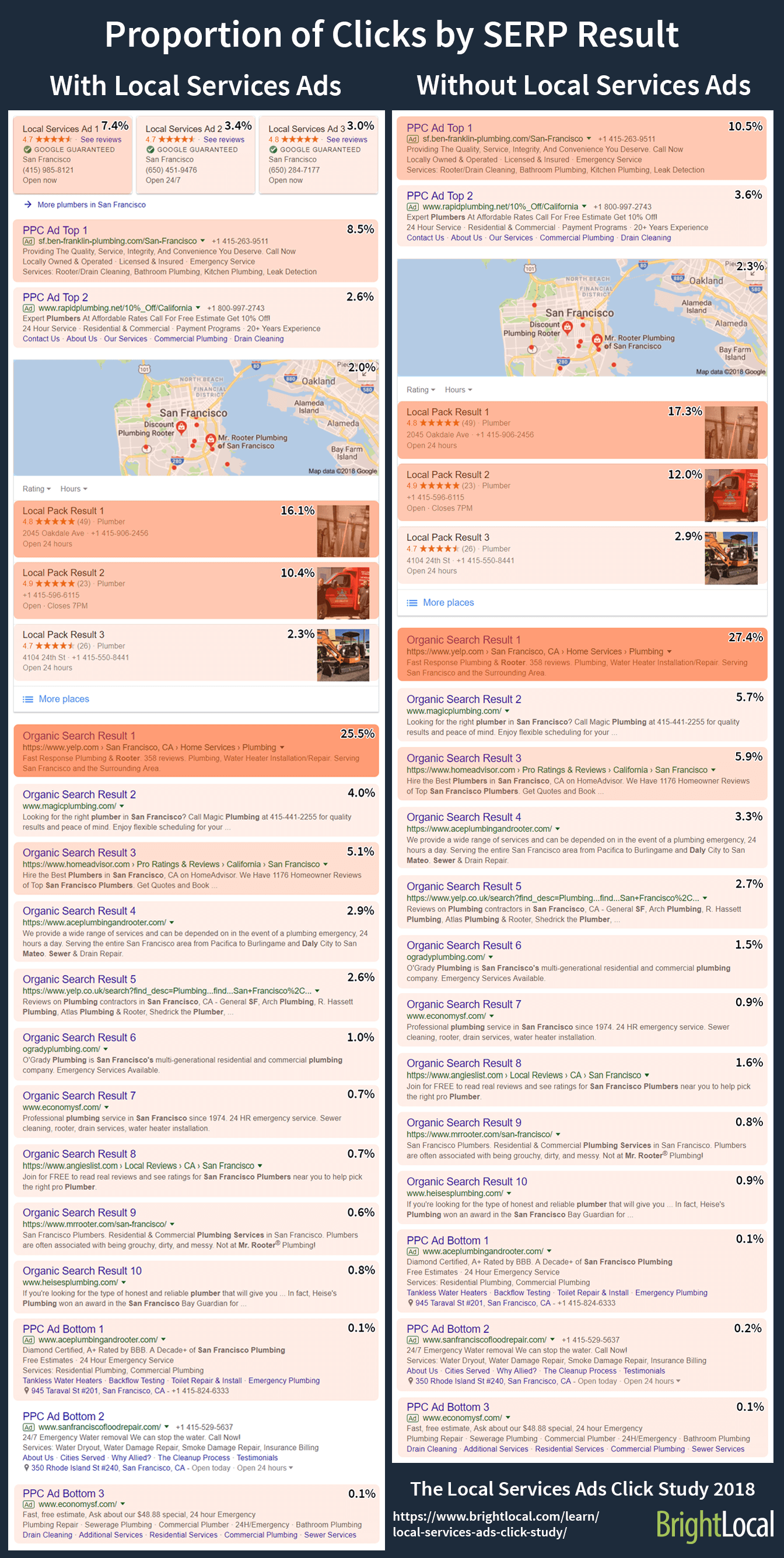 - When LSAs are present, 25.3% of all clicks are on paid results. When LSAs are absent, this is 14.6% – a difference of 10.7%